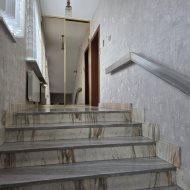 Przyziemie to doskonale zaprojektowana przestrzeń pomocnicza: wygodna szatnia, garderoby, pomieszczenia gospodarcze, toaleta oraz garaż. Naturalny kamień na podłogach podkreśla solidny charakter tej części domu.