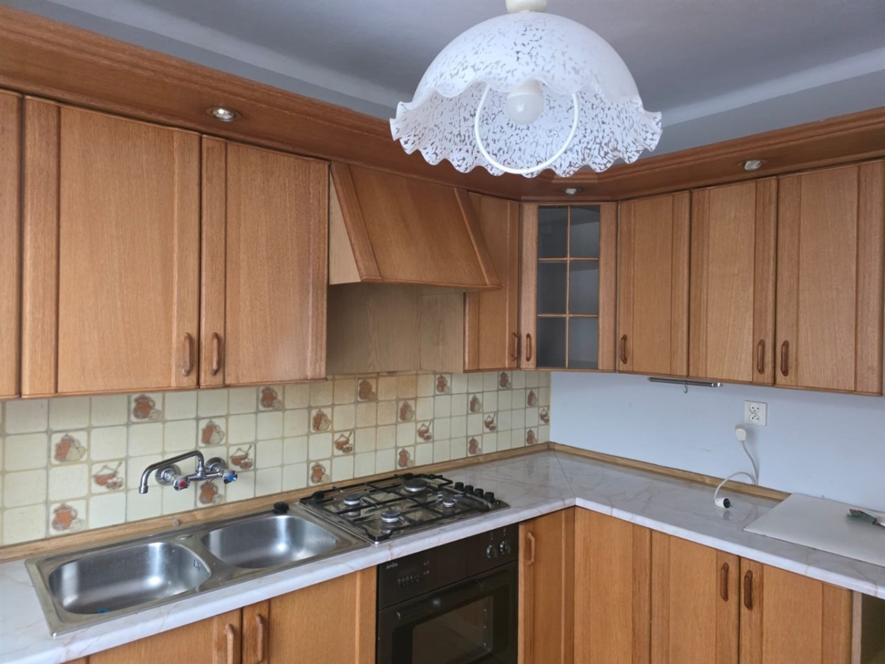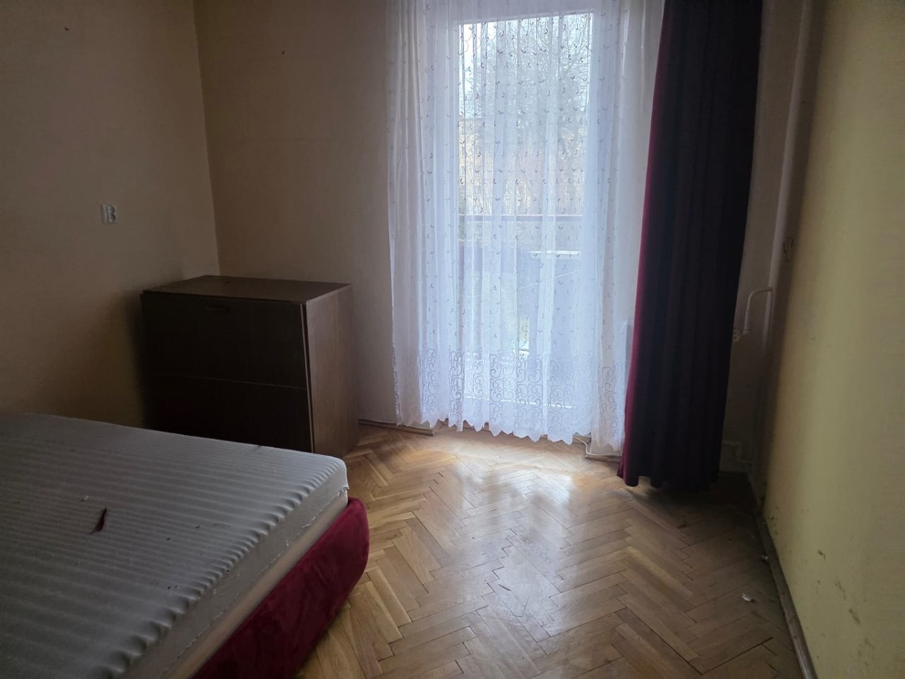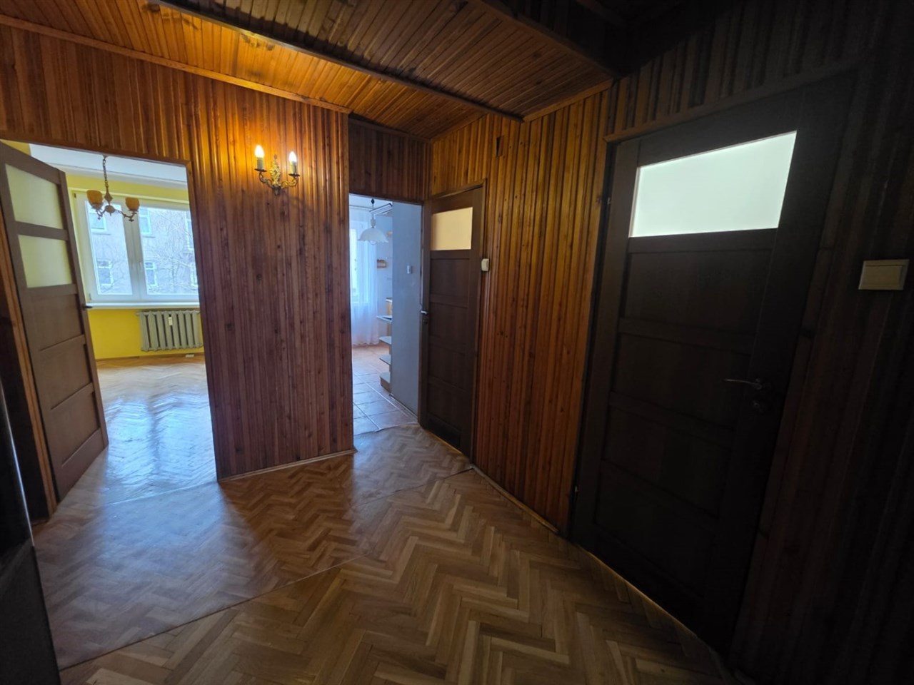 Na podłogach parkiety dębowe, wysokiej klasy drzwi wejściowe drewniane meble kuchenne (starszego typu, ale zadbane)