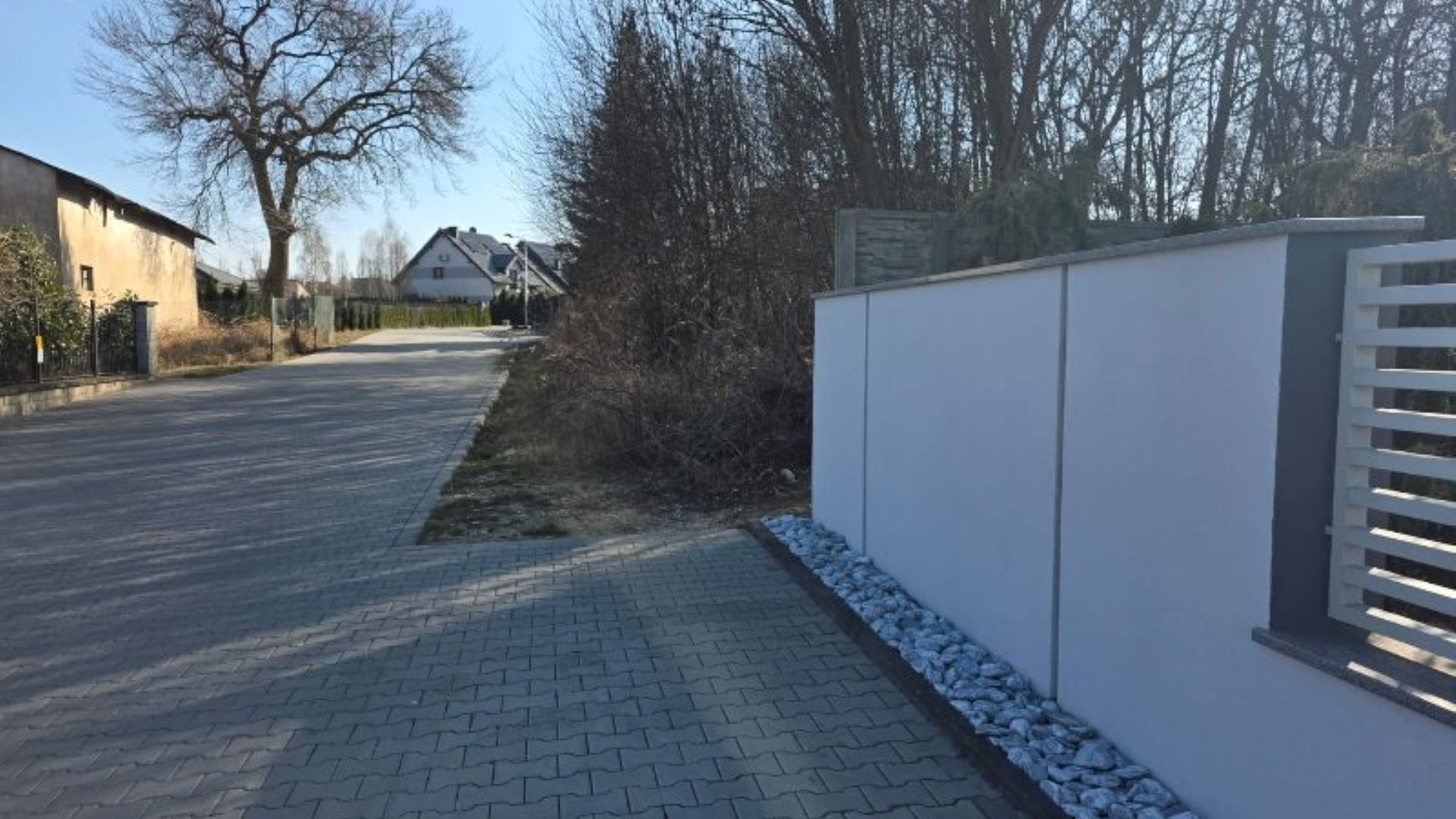 Dojazd do działki prowadzi drogą o nowej nawierzchni brukowej, co zapewnia wysoki komfort użytkowania oraz estetyczne otoczenie nieruchomości. W sąsiedztwie zabudowa nowych domów jednorodzinnych