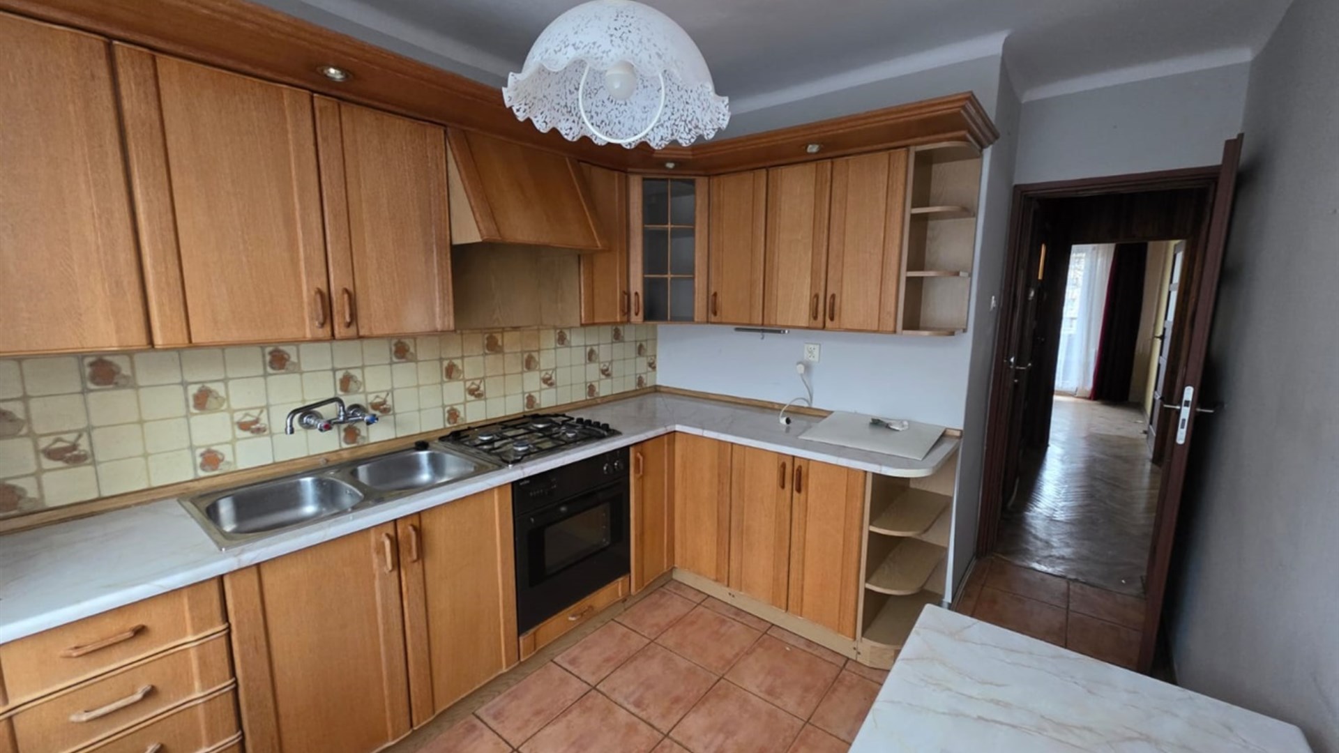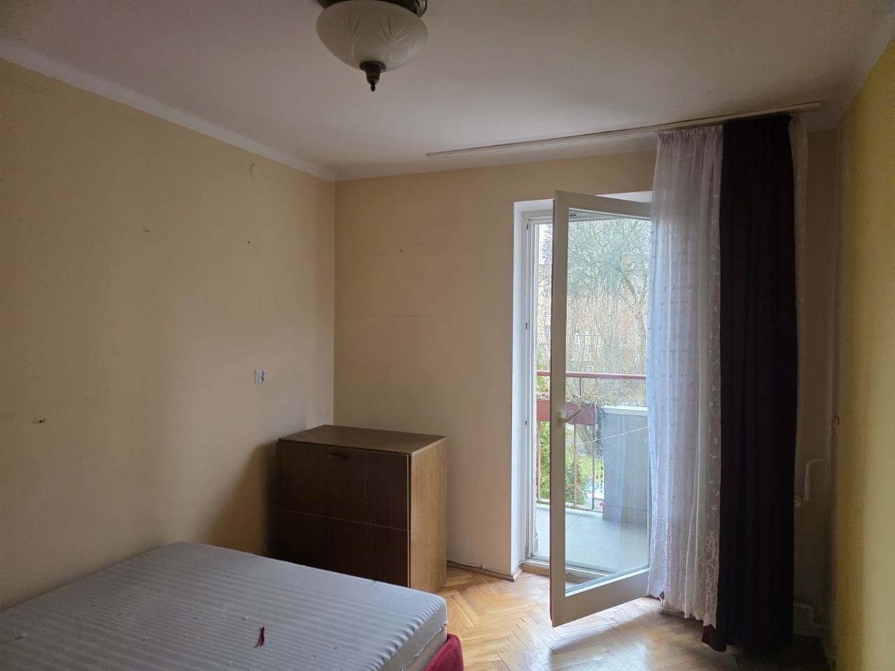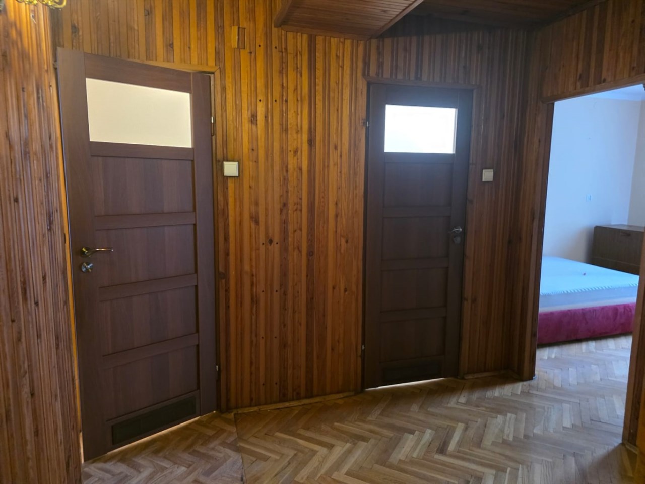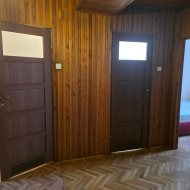 Na podłogach parkiety dębowe, wysokiej klasy drzwi wejściowe drewniane meble kuchenne (starszego typu, ale zadbane)