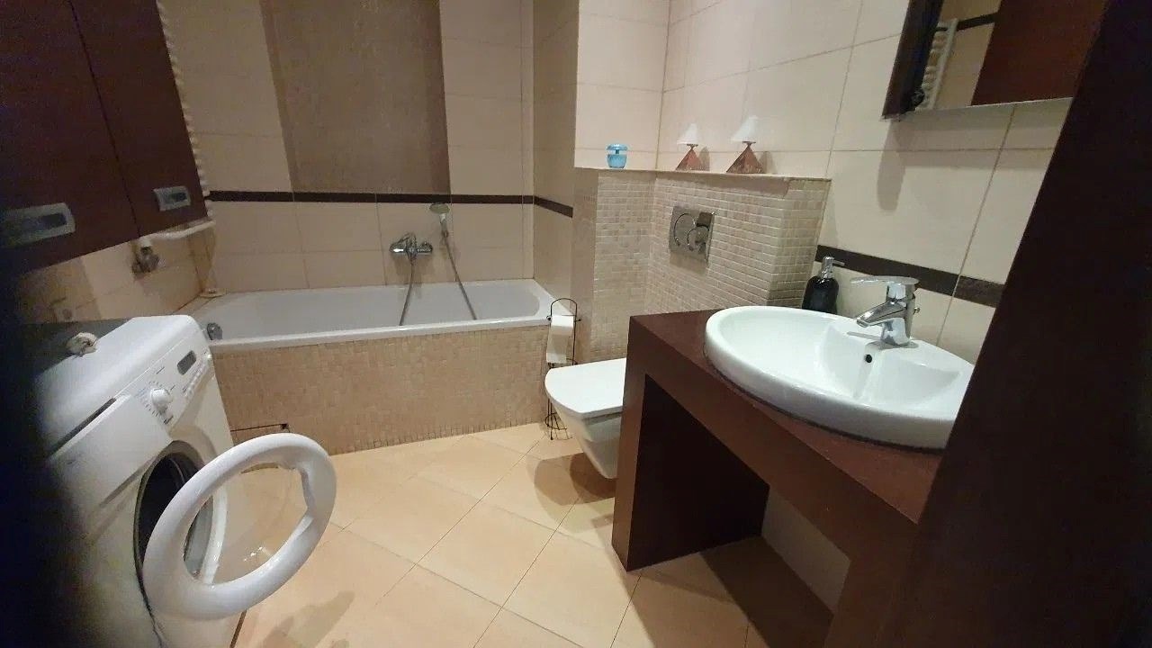 Dwie łazienki: jedna z prysznicem, druga z wanną i pralką,